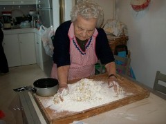 I susumelli sono degli squisiti dolcetti tipicamente natalizi della zona di Sant'Agata di Puglia. Si cominciano a preparare molti giorni prima di Natale e si usa regalarli tra parenti ed amici, tra i quali si stila una vera e propria graduatoria delle cuoche più brave. In assoluto, i migliori susumelli sulla piazza sono quelli di nonna Ausilia e a noi tocca il privilegio di darvene in esclusiva la ricetta. 1 Kg. farina 2 bicchieri abbondanti di olio scaldato 1/4 pentolino di vino caldo succo di 2 arance 100 grammi zucchero Impastare la farina a fontana con l'olio, aggiungere lo zucchero, poi il succo delle arance e il vino. L'impasto deve essere mantenuto in un recipiente da collocare a bagno maria in acqua calda. Si prende una parte per volta e si stende in rotolini di circa 15 centimetri, si tagliano in tre parti, ognuna delle quali si passerà schiacciandola con un dito su un apposito legnetto scanalato (nella foto) per renderla leggermente concava e più leggera. I tre segmenti si uniscono uno sull'altro stringendoli forte alle estremità perché non si aprano in fase di cottura. Una volta preparati, si friggono finché non avranno un bel colore dorato. Dopo averli fritti, vanno fatti freddare. Solo dopo si colerà sopra del miele liquido con una granella di nocciole. Una Preghiera per nonna Ausilia che non è più tra di noi Tratto da www.foggiapress.it