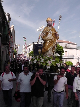 Nel mezzo, tra i palii e il popolo dei fedeli, c’è la statua del santo.
