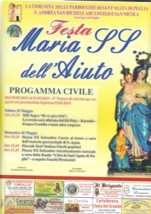 26 Maggio la Comunità Religiosa di Sant’Agata di Puglia festeggia la Madonna dell’Aiuto , PROGRAMMA : sabato 25 Chiesa S. Andrea Apostolo dalle ore 15 alle ore 18 Adorazione Eucaristica, ore 18,30 Santa Messa a seguire la processione Eucaristica per le vie del Borgo, ore 21,30 in Piazza Chiancato XIX Sagra “ RE RE PIZZ FRITT “ allietata dal DJ Paki e Franco Contillo e altre sorprese.