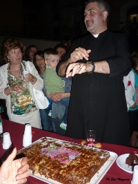 Grande festa e ben riuscita, ieri sera davanti la Chiesa Madre di San Nicola, dove il parroco Don Radeck ha voluto riunire tutti i gruppi religiosi, dopo la messa, per una cena all’aria aperta. La sua promessa di offrire ai parrocchiani una sua specialità, a base di fagioli, è stata mantenuta.