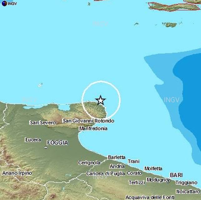 La Rete Sismica Nazionale dell'INGV ha localizzato due scosse nei distretti sismici del Promontorio del Gargano e dei Monti della Daunia, con epicentro a Vieste, Accadia, Anzano e Monteleone di Puglia“