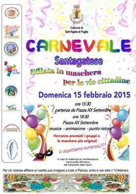 Vi aspettiamo numerosi il 15 febbraio in piazza XX Settembre a Sant' Agata di Puglia.