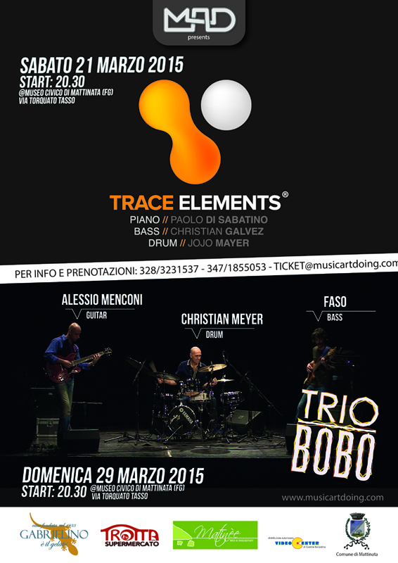 Sarà il Museo Civico di Mattinata ad ospitare i due appuntamenti musicali di marzo più importanti della Capitanata: Trace Elements di Paolo Di Sabatino, con Jojo Mayer alla batteria e il concerto del Trio Bobo, organizzati dal MAD Music School.