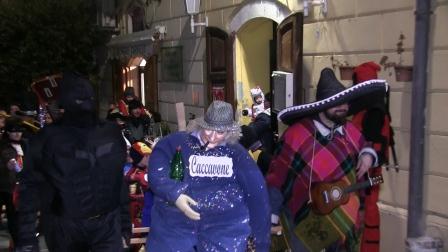 Carnevale è il periodo che ricordo più volentieri di quand'ero bambino. Forse perché ci era consentito almeno, una volta all'anno, essere trasgressivi, come dicevano i latini (Semel in anno licet insavire...). Ci vestivamo con le cose dei grandi e questo già ci faceva impazzire, specie se ti vestivi da donna. In faccia del lucido da scarpe per fare barba e baffi ed il gioco era fatto! Comunque le maschere che ci insegnavano a scuola mi affascinavano tanto: preferivo Arlecchino tutto colorato, perché il suo vestito fatto con pezze colorate rappresentava bene la mia povertà di allora. Poi in un teatrino di burattini conobbi Pulcinella e m'introdusse nel mondo dello scherzo e del sorriso e capii che era la maschera più appropriata per rappresentare il Carnevale. L'Italia ha una grande ricchezza di maschere nate dal teatro dei burattini, dalla Commedia dell'arte, da tradizioni antiche oppure sono state ideate appositamente come simboli dell'allegria e del divertimento. Nella nostra Puglia ad esempio ci sono: "Farinella" (Putignano), "lu Pagghiuse e Gibergallo" ( Massafra), " u Titoru" (Gallipoli), "u Panzone", " a vicchiaredd", "u sceriff" (Corato), "Ze' Peppe (Manfredonia) ed a Foggia ne abbiamo addirittura sette: 'u Moneche cercande, 'a Pacchianèlle, Menille, Ursitte stagnarille, Sciammi sciamme, Zechille, Peppuzze. E a Sant'Agata di Puglia abbiamo una maschera? Ma certo! Abbiamo CACCAVONE! Caccavone è nato da un'idea di Leonardo Capano e sua moglie Lina e quest'anno ha sfilato con tutte le altre per le strade del nostro paese. Dice Leonardo con grande schiettezza: - L'ho intitolata io per scherzo di carnevale, visto che in tante parti hanno la loro maschera, ho detto perché noi no, e così è nato CACCAVONE, una maschera costruita da me e mia moglie . Forse nemmeno Nardino Capano s'è reso conto che nome più azzeccato non poteva dare a questa maschera. Caccavone viene da caccavella che significa pignèta o anche strumento a frizione (tamburo con un bastone al suo interno) ed è chiamato pure: "Pernacchiatore", "Puti-puti", "Pignato", "Cute-cute", "Cupellone" e...... udite udite : " cupe cupe". La canzone dice infatti: - Agge sapute ch'éje accìse lu puórche lu cupe cupe. Cupe cupe significa caccavella, da cui CACCAVONE; vedete che i conti tornano? Ora anche a Sant'Agata di Puglia, grazie a Nardino, abbiamo la nostra maschera tutta santagatese e si chiama CACCAVONE. Lunga vita a CACCAVONE!