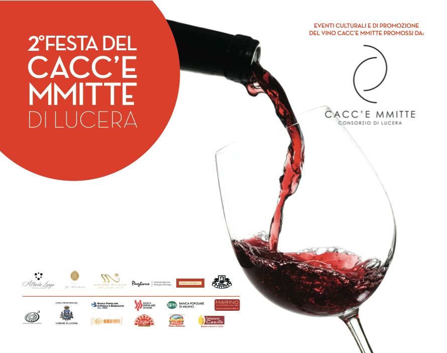 LUCERA (Fg) – Si terrà domani, martedì 27 settembre 2016 alle ore 11, nell’Aula consiliare del Comune di Lucera, la presentazione del programma ufficiale inerente la seconda edizione della Festa del Cacc’e Mmitte, organizzato dal Consorzio Cacc’e Mmitte di Lucera. All’incontro con i giornalisti, parteciperanno: Antonio Tutolo, sindaco di Lucera; il presidente del Consorzio, Alberto Longo, titolare dell’omonima azienda vitivinicola; Paolo Petrilli (Motta della Regina), Sergio Lucio Grasso e Marika Maggi (Cantina La Marchesa), Valeria Pitta (Masseria nel Sole), Nicola Faccilongo (Agricola Paglione), Michele Di Gregorio (Cantina Svevo).