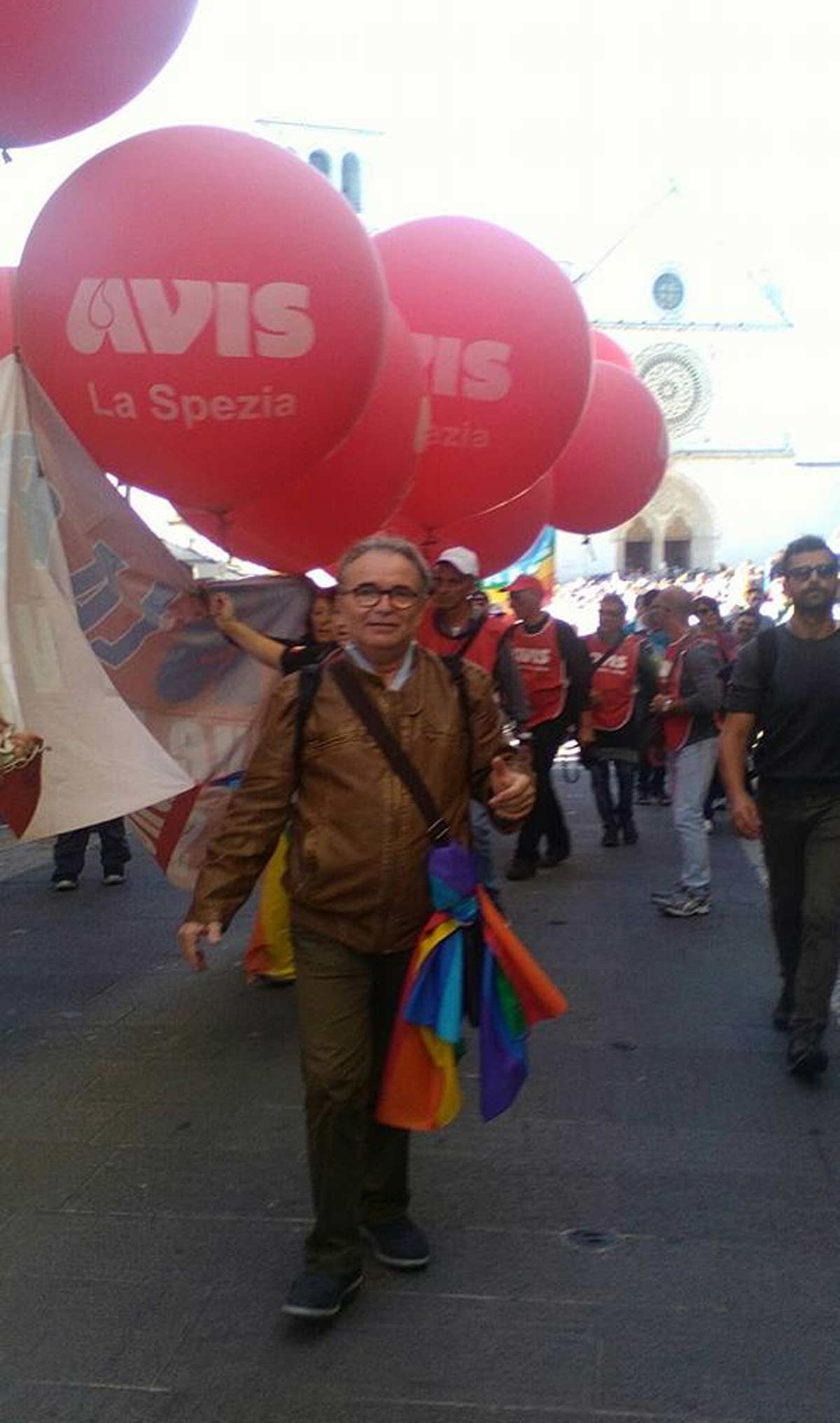 Oltre 14 ore di viaggio, tra andata e ritorno. Poco contava, però; l’importante era esserci. All’arrivo a Perugia, poco dopo l’alba, migliaia di persone con bandiere variopinte già marciavano verso Assisi: uomini e donne di ogni età, giovani sorridenti, bambini festosi.