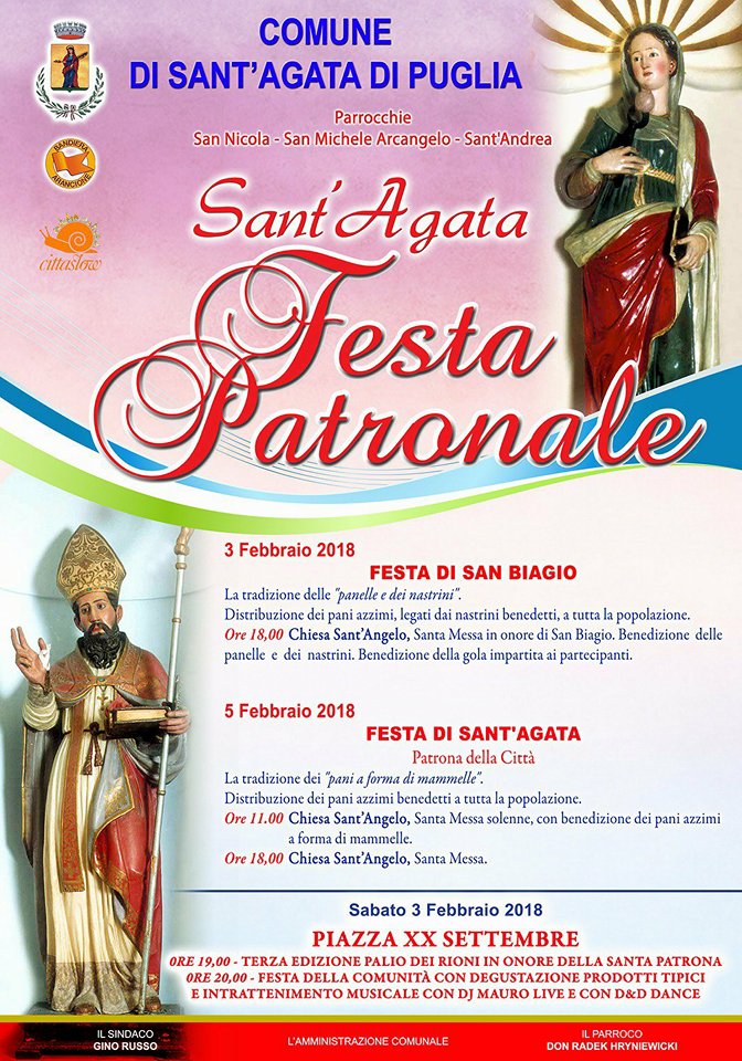 Ogni anno il Comune provvede alla distribuzione, casa per casa, delle panelle benedette di San Biagio.
