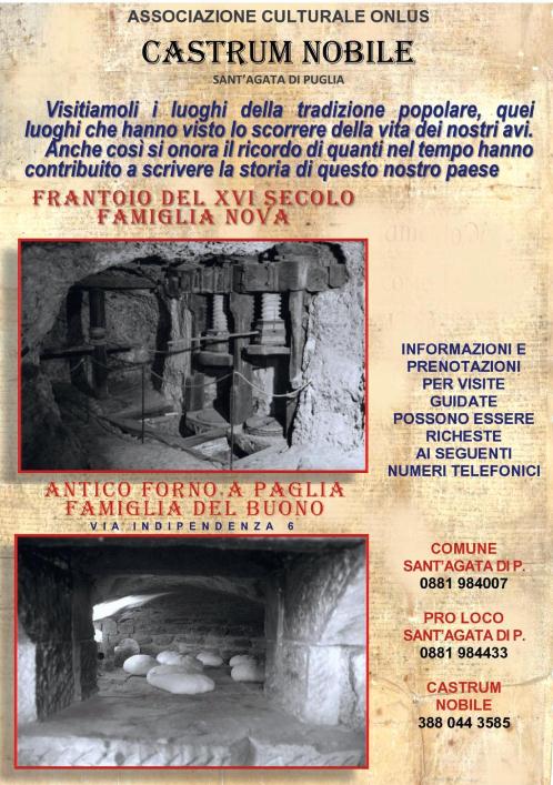 Con l’apertura al pubblico della struttura del vecchio forno (“r lu castierre”), si dà a tutti la possibilità di visitare quei luoghi che hanno visto lo scorrere della vita dei nostri avi. Anche così si onora il ricordo di quanti nel tempo hanno contribuito a scrivere la storia del nostro paese.