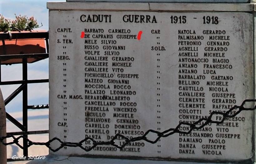 Si tratta del capitano De Capraris Giuseppe di Pasquale del 9° reggimento fanteria. Nato a Sant'Agata di Puglia il 22 dic 1890 e morto a 25 anni, il 26 dic 1915 nell'ospedaletto da campo 092 per ferite riportate in combattimento.