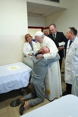 Gli anziani, patrimonio mondiale dell'umanità. Lo propone Papa Francesco oggi in visita nei luighi di Padre Pio, tra Pietrelcina e San Giovanni Rotondo. Il Papa, per la prima volta sul Gargano, è stato accolto da almeno 30 mila fedeli provenienti da tutta Italia, ma anche da alcuni Paesi lontani come Argentina e Brasile. Bergoglio è giunto a San Giovanni Rotondo a 50 anni dalla morte e a 100 dall'apparizione delle stimmate di Padre Pio. Il Santo Padre arriva puntuale, atterrando nel campo sportivo. Da qui a bordo della papa mobile percorre alcune vie cittadine prima di fermarsi nel Poliambulatorio dove si trova il reparto di oncologia pediatrica. Un momento toccante con il Papa che abbraccia i tanti bambini malati. "Chi si prende cura dei piccoli sta dalla parte di Dio, e vince la cultura dello scarto che al contrario predilige i potenti e reputa inutili i poveri". Poi una preghiera sul corpo di Padre Pio nel santuario di Santa Maria delle Grazie, infine la santa messa sul sagrato della nuova chiesa dove il Papa ha voluto i govani e i bambini in prima fila, e non le autorità, relegate dietro. Ed è proprio ai bimbi e agli anziani che Bergoglio ha dedicato il suo incontro. Oggi con tanta crudeltà, si scartano bambini e anziani, perchè evidentemente non servono ai potenti. Nell'omelia, il Papa, punta l'indice contro la cultura dello scarto."Noi facciamo lo stesso, quello che non serve va scartato". Ed ancora parole belle sugli anziani. "Sono la saggezza, non vanno emarginati. Sarebbe bello che una volta si desse a loro il Premio Nobel". (Foto Casa Sollievo della Sofferenza).