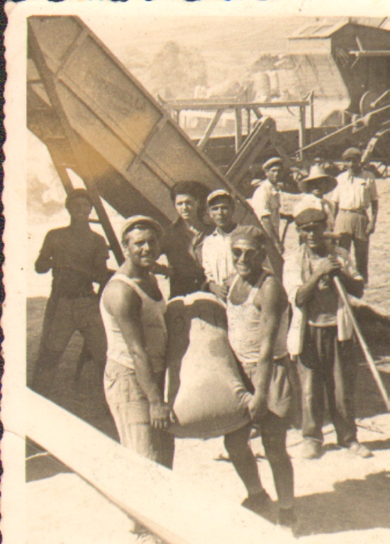 Finché a un certo punto cominciava a circolare la voce che la trebbia era vicina. Tempo qualche giorno e sarebbe arrivata. Così un bel giorno qualcuno veniva ad avvisare e allora ci si precipitava all’aia dei covoni. La trebbia la si vedeva arrivare, lungo i campi di stoppie gialle, che veniva giù verso l’aia, mezzo traballante, tirata dal trattore Landini, e, siccome era stretta e alta, dava l’impressione che da un momento all’altro dovesse rovesciarsi su un lato. Intanto c’era tutta una folla che faceva ala ai lati, composta da quelli che sostenevano la trebbia, dai contadini che erano accorsi a vederla, dai proprietari dei covoni, dalle donne, dai bambini. Insomma era come se ci si preparasse a una festa. La mattina dopo non s’era ancora fatto chiaro, che già si attaccava la bombola del gas al Landini, il quale dopo un poco lanciava dei colpi così laceranti nell’aria calma, con relativa nuvola nera di scarico, che, insieme ai cani che abbaiavano imbestialiti, si sentivano tutti gli animali delle masserie. Intanto la trebbia aveva preso il suo ritmo e era tutto un girare di cinghie e pulegge, di nastri e cilindri, mentre il rullo sollevatore ingoiava i fasci di grano che venivano buttati coi forconi. Si cominciavano a riempire i primi sacchi di grano e ogni proprietario, che vi aveva tenuto il covone, portava i sacchi nel suo posto, sull’aia all’aperto. Questi sacchi venivano ammassati a mucchi e si aspettava che doveva venire il commerciante col camion a comprarli. Ma intanto passava qualche giorno, e la notte si lasciava a dormire un ragazzo, per maggior sicurezza che non venissero rubati i sacchi. Noi ragazzi si dormiva in mezzo ai sacchi, ma se qualcuno avesse voluto rubare, era sicuro che si sarebbe preso il grano insieme a noi; c’avrebbero potuto trasportare in capo al mondo, nessuno si sarebbe accorto di niente. Durante i giorni della trebbiatura c’era un via vai di gente che sembrava una festa. Le donne preparavano le orecchiette sui tavoli all’aperto. Gli uomini scaricavano i fasci di grano dai covoni. C’era quello che teneva appesi i bambini alla mazza sulle proprie spalle e gli faceva fare la giostra. Quell’altro che cantava, anche se in mezzo al rumore della trebbia e del “motore”.Quello con gli occhiali da motociclista e fazzoletto sul naso, sotto il tubo di scarico della paglia, alzava la “meta”, cioè il covone di paglia. Più in là i maiali, sotto i gelsi neri, ne mangiavano i frutti e, erano così imbrattati del colore rosso che fuoriusciva dei gelsi, che erano sporchi come maiali. Oggi, a raccontarli, questi fatti, sembra che sono passati dei secoli, talmente le condizioni di vita e di lavoro sono cambiate, mentre invece tutto avveniva appena cinquant’anni fa.