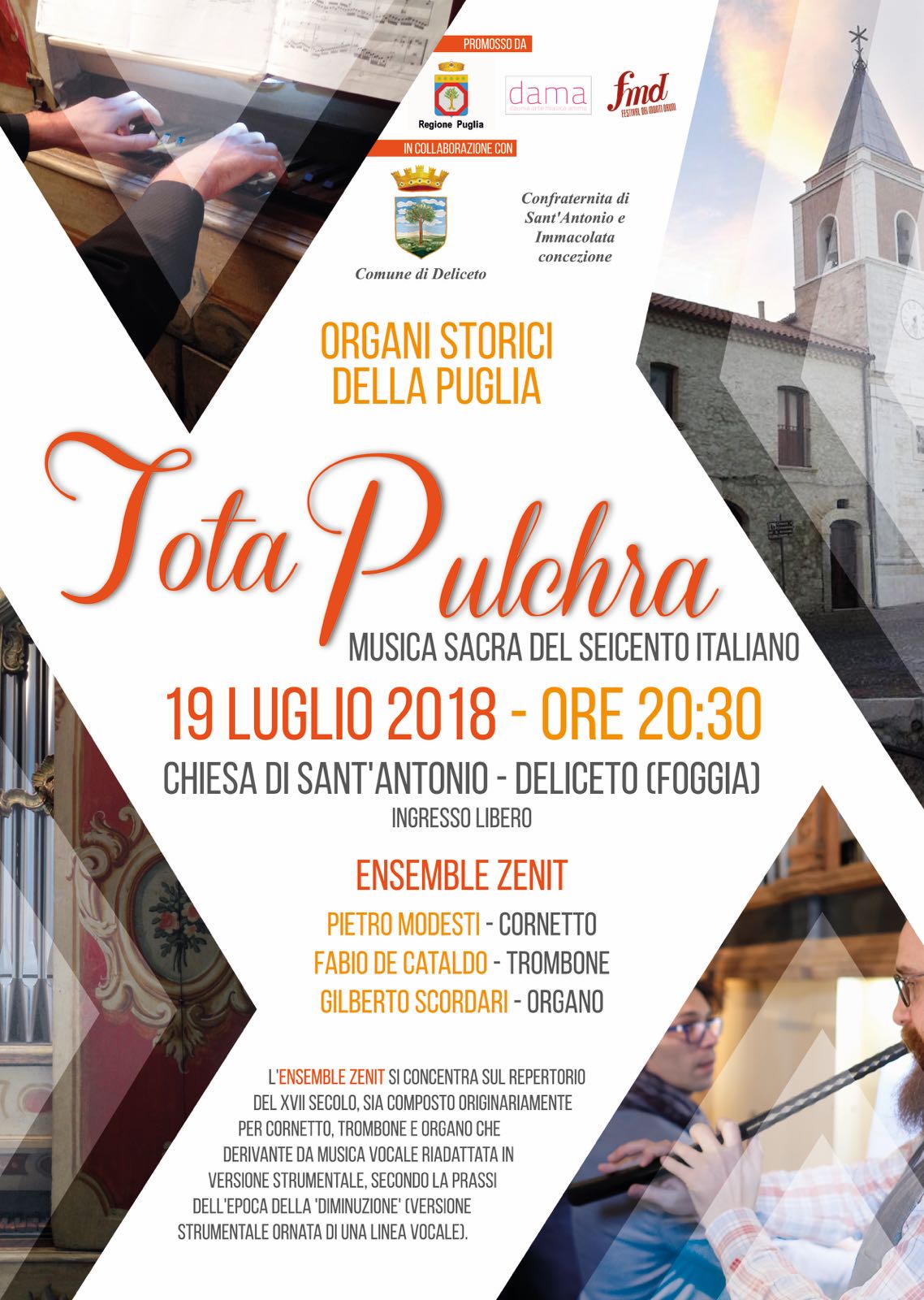 Parte con una anteprima a sorpresa quest'anno la XVI edizione del Festival dei Monti Dauni, giovedì 19 luglio a Deliceto, con “Tota Pulchra, per la sezione “Organi storici della Puglia”.