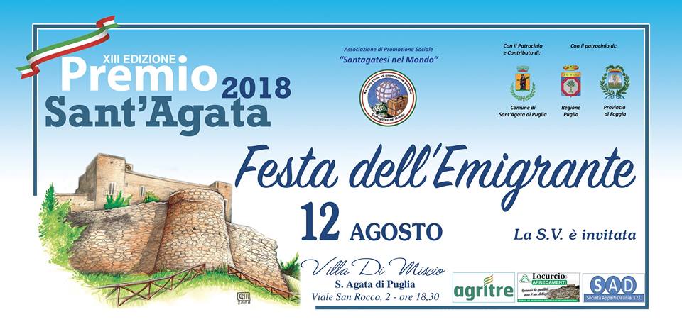 L'evento, con il patrocinio del Comune di Sant'Agata, si svolgerà domenica 12 agosto, alle ore 18.30, presso Villa Di Miscio e sarà seguito, come sempre, dalle telecamere di Artemisium Web Tv, il portale web di Santagatesi nel Mondo che, negli anni, ha connesso migliaia di persone con il caratteristico centro dei Monti Dauni.