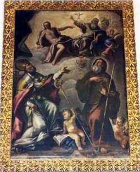 Scrive Don Lorenzo Agnelli : Francesco Basso, nel 1720 fabbricò tra la piazza e la porta nuova una Chiesiola, che dedicò alla S.S. Trinità ed accanto quattro stanze per l’ospedale,uomo di provata fede, e di sentimenti generosi e pii, pensò miticare la sventura e la povertà,lasciando il bastevole per un ospedale e mendici. sull’altare, si trova un importante affresco: la pala del 1720 di Salvatore Ferrari da Rivello, di Potenza, il pittore che aveva voluto rendere grande una chiesa piccola. Qualche anno fa sempre ad opera del benefattore Michele Perrone fu restaurata la facciata e l’artistico portale in pietra.