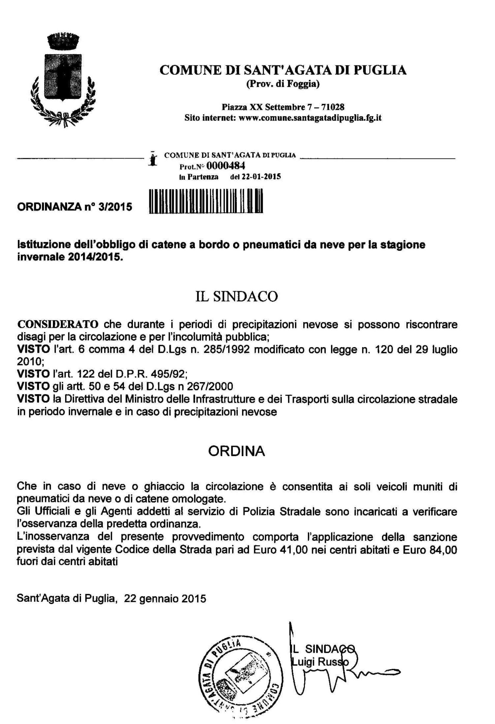 Direzione e Redazione: Via G.Garibaldi, 44 - 71028 Sant'Agata di Puglia (FG) Tel. +39 0881 984319 - +39 368 7216910