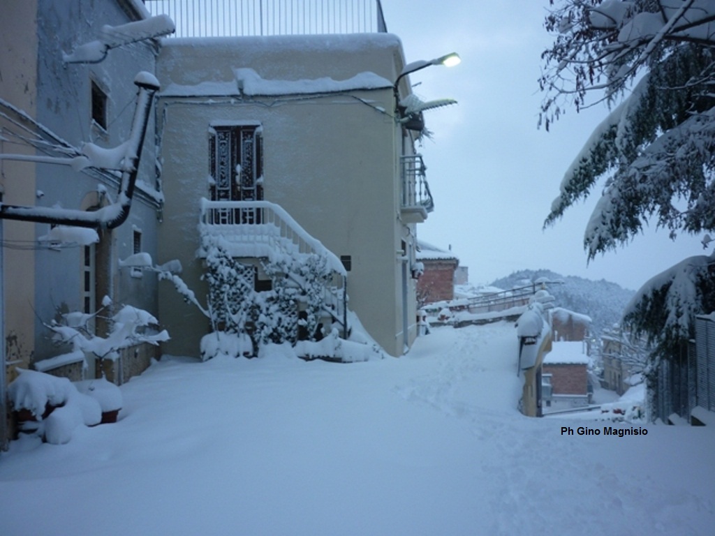 Quella neve, a quello stesso punto, mi ricorda quando eravamo bambini. Eravamo cinque maschi e tutti terribili, stavamo in circolo intorno a lu vrasciér che era appoggiato ad una pedana circolare, al centro della stanza.