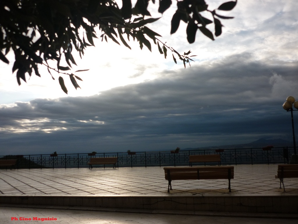 Questa Domenica di ottobre si presenta molto fredda. Negozi chiusi e nessuno per strada. Ho scattato varie fotografie ma ho deciso di regalarvi la più suggestiva di oggi: la piazza del paese, vista panoramica del cielo come sfondo, dietro quelle panchine vuote e le foglie dell’albero che danno un angolo di cornice meraviglioso. Siamo in autunno ragazzi, e l’inverno è arrivato. Tra un pò la piazza si animerà di gente con il giornale sotto braccio, qualcuno andrà in chiesa, altri con il cartoccio di paste in mano e qualche contadino che è salito in paese col vestito della domenica.