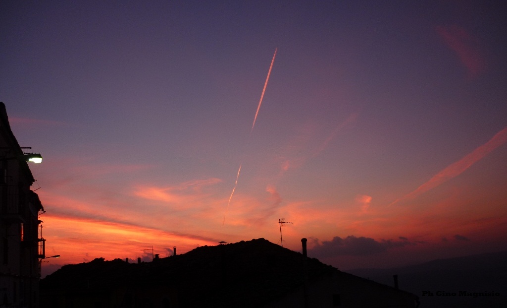 Buongiorno Amici e buon caffè a chi si è appena alzato. Tra il chiaro scuro dell’alba non potevo farmi sfuggire questi colori arancioni che la natura offriva stamattina. Una scia di un aereo o una stella cadente? A voi l’immaginazione…