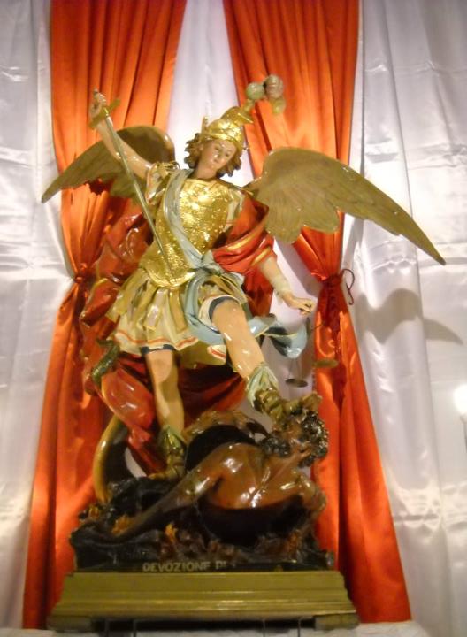Su quelle scale davanti la chiesa, spesso mi sedevo da bambino, dopo le solite corse di giochi con gli amici e ogni volta mi tornava alla mente la statua dell’Arcangelo con la spada che infieriva sul diavolo posta all’interno della chiesa.