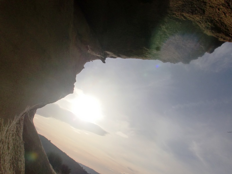 Stamattina, come tutte le domeniche, footing con gli amici per la strada vecchia di Accadia. Vento frizzante e dolce sole, aria pulita tra i boschi. La mia macchinetta sempre dietro a tracolla. Al rientro non potevo perdere quella strana luce e così, posizionato sotto la pietra di San Lorenzo, l'ho fotografata dal basso in alto, come se fossi una lumaca tra l'erba che rivolge gli occhi al cielo. Le foto sono belle quando scorgi "Il Particolare". Ciao
