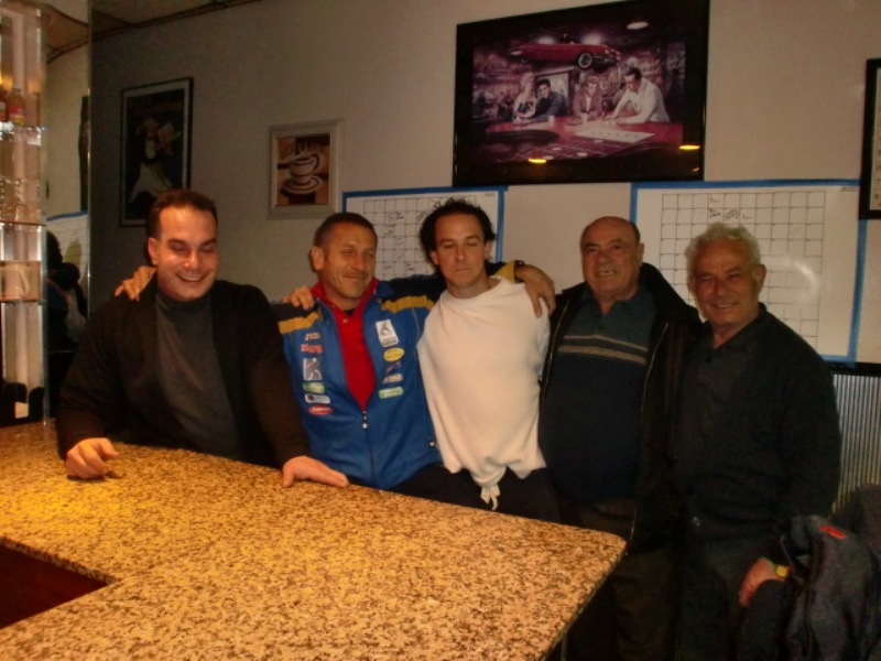 Qui siamo nel bar dei figli di Frank. Finalmente abbiamo preso un caffè puro italiano. Ci hanno accolto con entusiasmo e commozione. Siamo stati bene con loro. I figli di Frank: Dominique e Frank junior