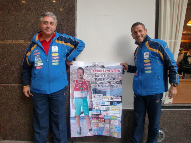 IERI CON TONINO SIAMO ANDATI AL PALAZZO EXPO A RITIRARE IL PETTORALE . . .GRANDE EMOZIONE E FILA. NON E' STATO SEMPLICE TRA TANTA GENTE E MARATONETI DI TUTTO IL MONDO, MA NOI DA BRAVI SANTAGATESI, DI BUON MATTINO, ERAVAMO TRA I PRIMI. TONINO CORRERA' CON IL PETTORALE N.35446, CORRAL ARANCIONE, ALLE ORE 10.IN ITALIA ORE 16, DIRETTA SU RAI SPORT +. STAMATTINA ALLENAMENTO AL CENTRAL PARK CON ALTRI MARATONETI E PIZZOLATO, VINCITORE ITALIANO DUE VOLTE. ABBIAMO PORTATO CON NOI IL POSTER DI SANTAGATA E SPONSOR
