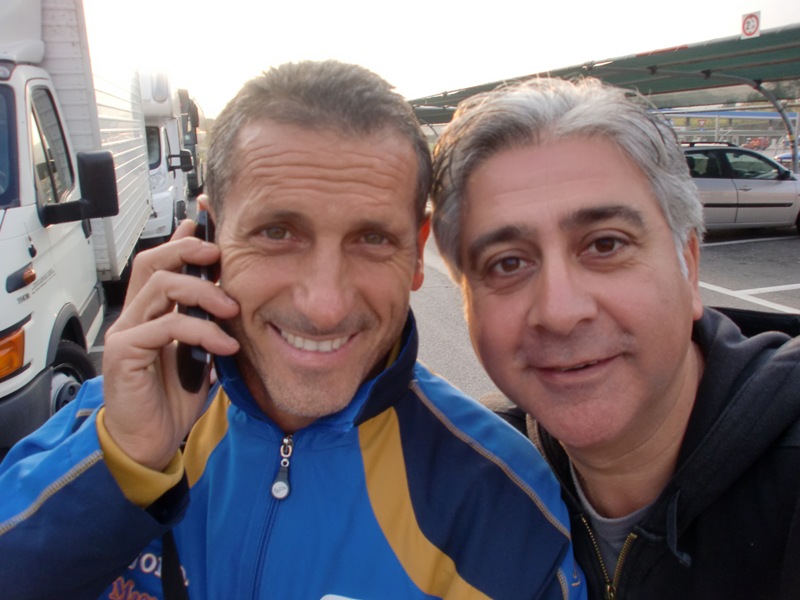 TONINO CHE ASCOLTA FELICE INFANTE, GIA' MARATONETA A NEW YORK DIVERSE VOLTE E FOGGIANO. FELICE HA FATTO IL VIAGGIO CON NOI IN MACCHINA DA CANDELA A FIUMICINO.