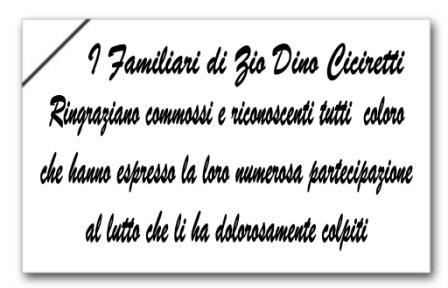 Desidero fare giungere anche da questo spazio un fraterno abbraccio all’amico Nardino ed alla sua gentile consorte per il gravissimo lutto che li ha colpiti, Alfonso De Capraris.
