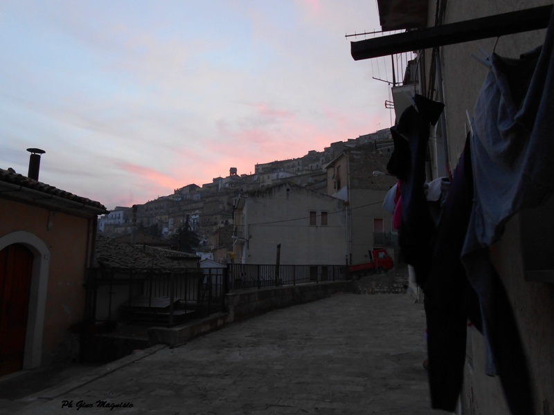 Nella foto notate i panni stesi alla…luna. Si approfitta quando non piove e anche di notte si mettono ad asciugare. All’orizzonte è l’alba di un nuovo giorno e quel colore rosa che sfiora le ultime case apre l’inizio di una giornata solare. Il paese si sveglia e noi con lui.