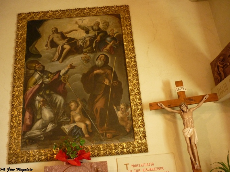 Tra le nostre chiese merita l’attenzione quella della SS. Trinità, piccola ma importante. All’interno, sull’altare, si trova un importante affresco: la pala del 1720 di Salvatore Ferrari da Rivello, di Potenza, il pittore che aveva voluto rendere grande una chiesa piccola.