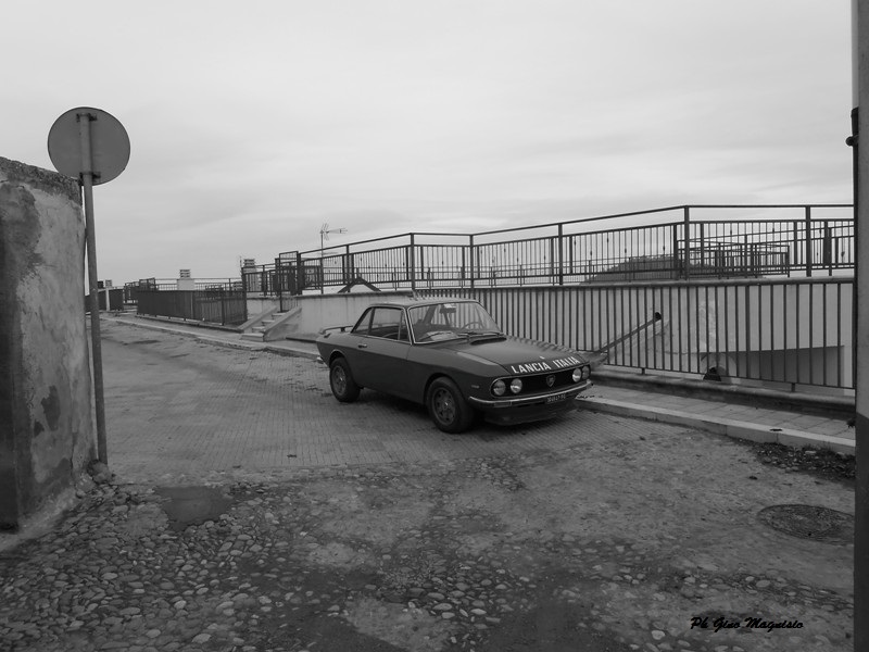 Di quanti anni fa è la foto? Non vi fate ingannare dal bianco e nero ne dalla strada rotta ne dalla macchina. La foto è di ieri. Dobbiamo ringraziare in nostro concittadino che è riuscito, per sua passione, a conservare quella vecchia auto Fiat Lancia in buono stato. Com’è strano. Una foto ti può portare indietro nel tempo. I ricordi belli della nostra gioventù. Forse è proprio questo