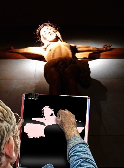 La mia presentazione mattutina della Domenica è sempre dedicata alle chiese e il Cristo raffigurato nell’immagine è presente al nostro paese, alle spalle dell’altare della Chiesa della SS. Annunziata in S.Antonio. Ho preferito proporvelo in penombra e da questa posizione, perché traspare la sua sofferenza. V’invito però a guardarlo da vicino, se andate di persona in chiesa, nella stessa posizione in cui l’ho fotografato io. Con le luci accese, noterete l’incredibile sguardo di Gesù Cristo: vivo, dolce e sofferente.