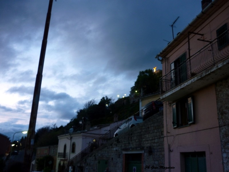 Stamattina alle 6.00 il cielo appare ancora sereno ma in cielo compaiono un po’ di nuvole. L’aria è fredda e i gradi sono 5. Stanotte un po’ di nebbia ha portato umidità. Volano via così dieci giorni di un nuovo gennaio. Il tempo passa e tu, paese mio, rimani sempre lì, immobile sopra la montagna. Lo ammiriamo da qualsiasi punto ci troviamo. Dalle campagne sottostanti, mentre il contadino semina la sua terra, mette in moto il suo trattore, si accinge a potare gli alberi, quel gruppo di case agglomerate, ci guardano e ci sorridono.
