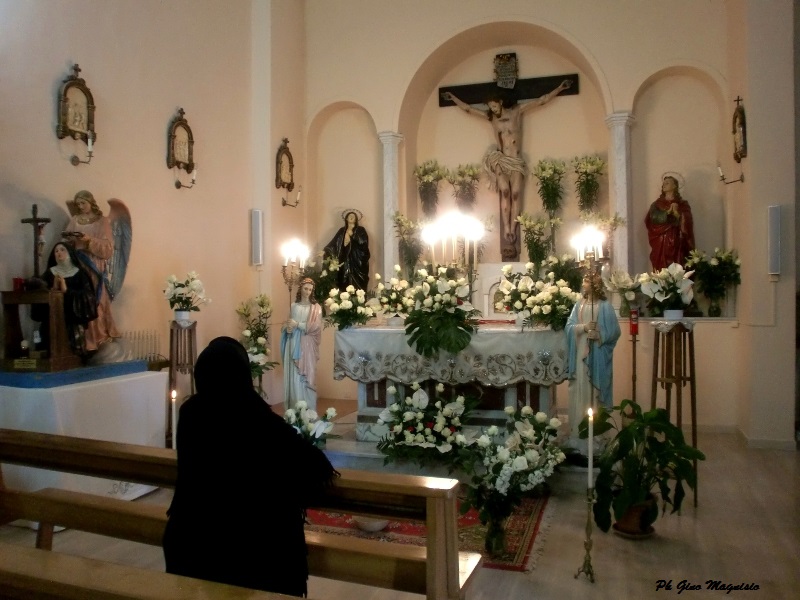 Qui siamo nella bellissima chiesa di S.Andrea del nostro paese. Non ha importanza in quale giorno né chi è l’anziana signora in preghiera. Durante la celebrazione delle messe, il prete, la gente e l’insieme delle loro voci nei canti, ti coinvolge insieme con gli altri nella stessa cerimonia. Ma quando si è soli, in silenzio, davanti a Dio, per chi crede, è un momento magico, soave, puro e che ti riempie di forza per andare avanti anche quando hai perso una persona cara o quando attraversi tristi momenti.