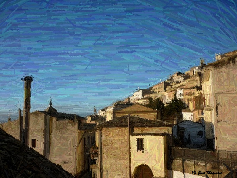 E se è vero che il nostro paese è bello e sembra una cartolina, è anche vero che in dipinto è molto pittoresco. Da una mia foto ho realizzato questo affresco e mi pare sia ben riuscito. Naturalmente è stato realizzato con un programma, perché a mano ci avrei messo molto tempo per realizzarlo.