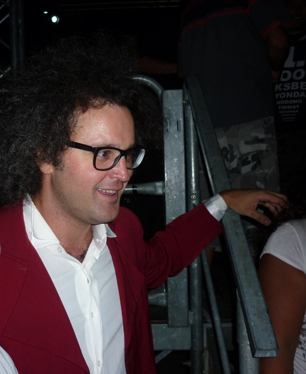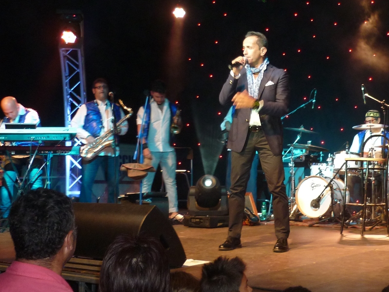 Recita, volteggia e canta sul palco allestito al Perillo. Cambiava spesso la giacca mostrando anche colori sgargianti che s'intonavano alle sue canzoni allegre, accompagnate da una buona fisarmonica e ottimi musicisti. Ironizza sulla politica, toccando anche problemi sociali. Molta gente presente ad ascoltarlo. Spettacolo iniziato alle 22,30 e finito alle 00,30.