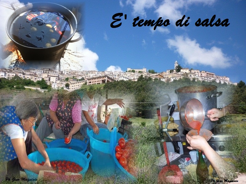E' tempo di salsa e tutti sono affaccendati nel box, nelle cantine e in campagna. Prima si usava di più fare la salsa in casa. Ricordo, quand'ero bambino, la nonna con mamma, zie e nipoti, come una festa, ma tanta confusione, si facevano le grandi manovre. Tutto organizzato: chi era addetto al taglio dei pomodori, chi al basilico(vasenecoia), chi alla bollitura, altri a riempire le bottiglie. Tutto il giorno, finché non si finiva tutto il lavoro. Si saltava anche il pranzo, ma poi...c'èra sempre qualcuno che raccoglieva un mestolo di quel pomodoro fresco e condiva all'improvviso "na spasetta" di spaghetti cotti all'istante. Quel giorno, tutta la casa, profumava di pomodori e basilico.